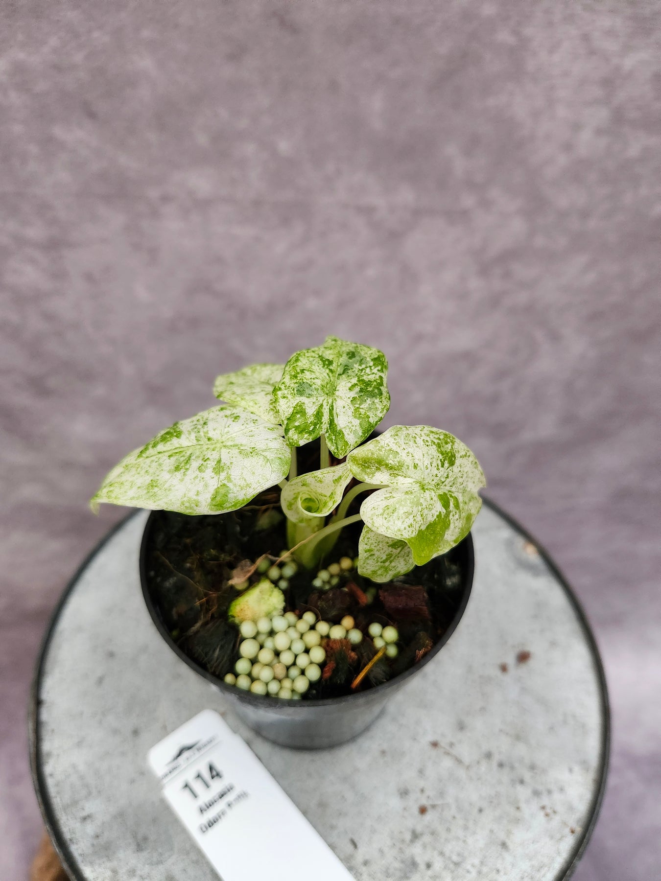 Unique Appearance:. This striking, delicate leaf Alocasia, is a must for any plant collection. Light airy leaves, filled with the perfect blend of variegation. Alocasia love a good bit of humidity & a great bit of sunlight.