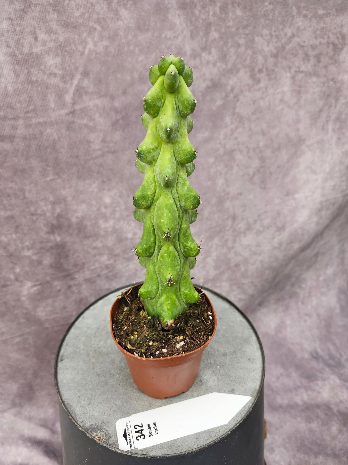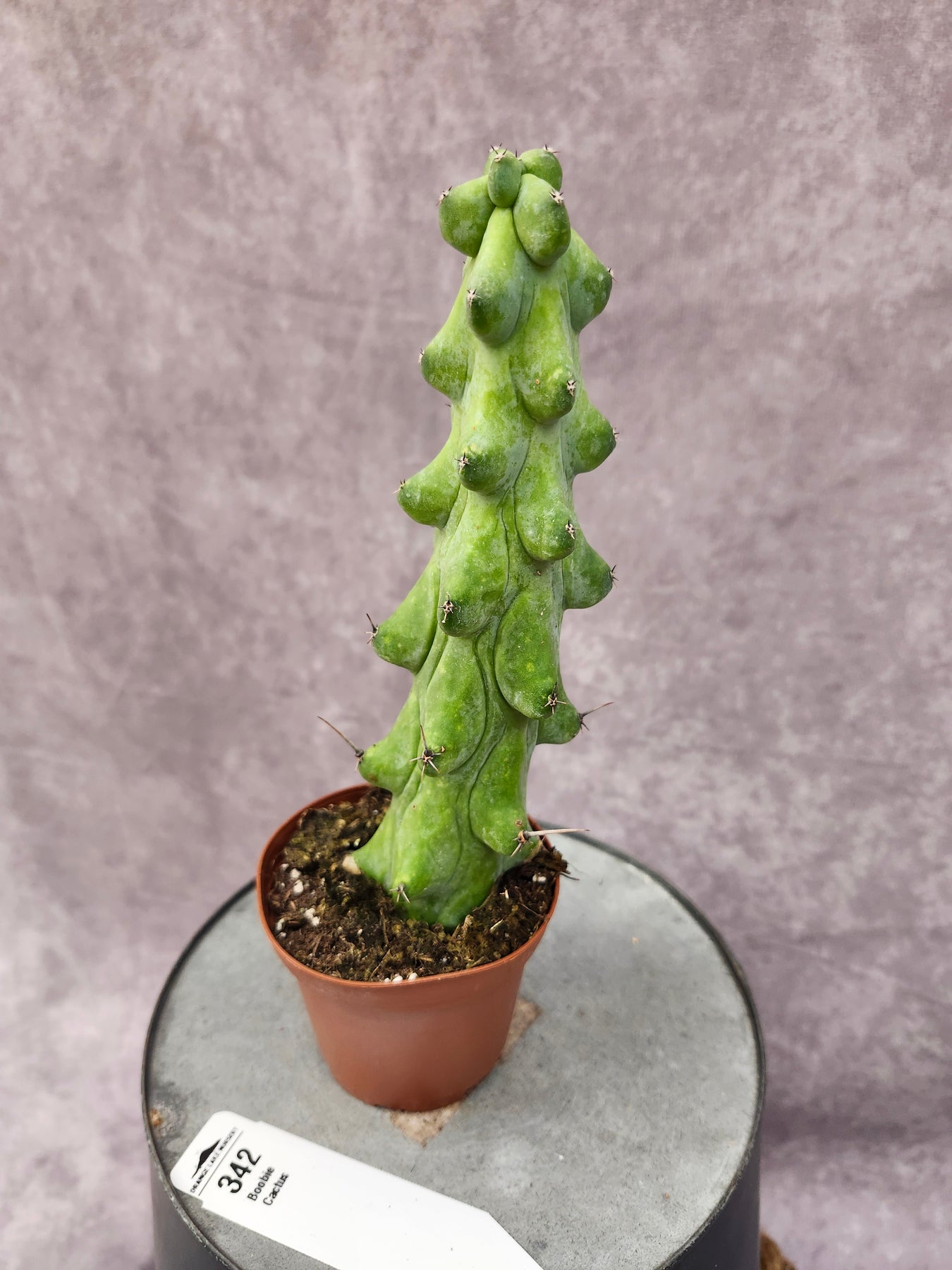 The Boobie Cactus is a rare and highly sought-after cultivar known for its unique, rounded rib formations that resemble soft curves along its blue-green columns. This eye-catching cactus is a true conversation piece and a favorite among collectors who appreciate unusual growth patterns and sculptural plants. Its slow-growing nature and striking form make it perfect for bright indoor spaces or protected outdoor displays.