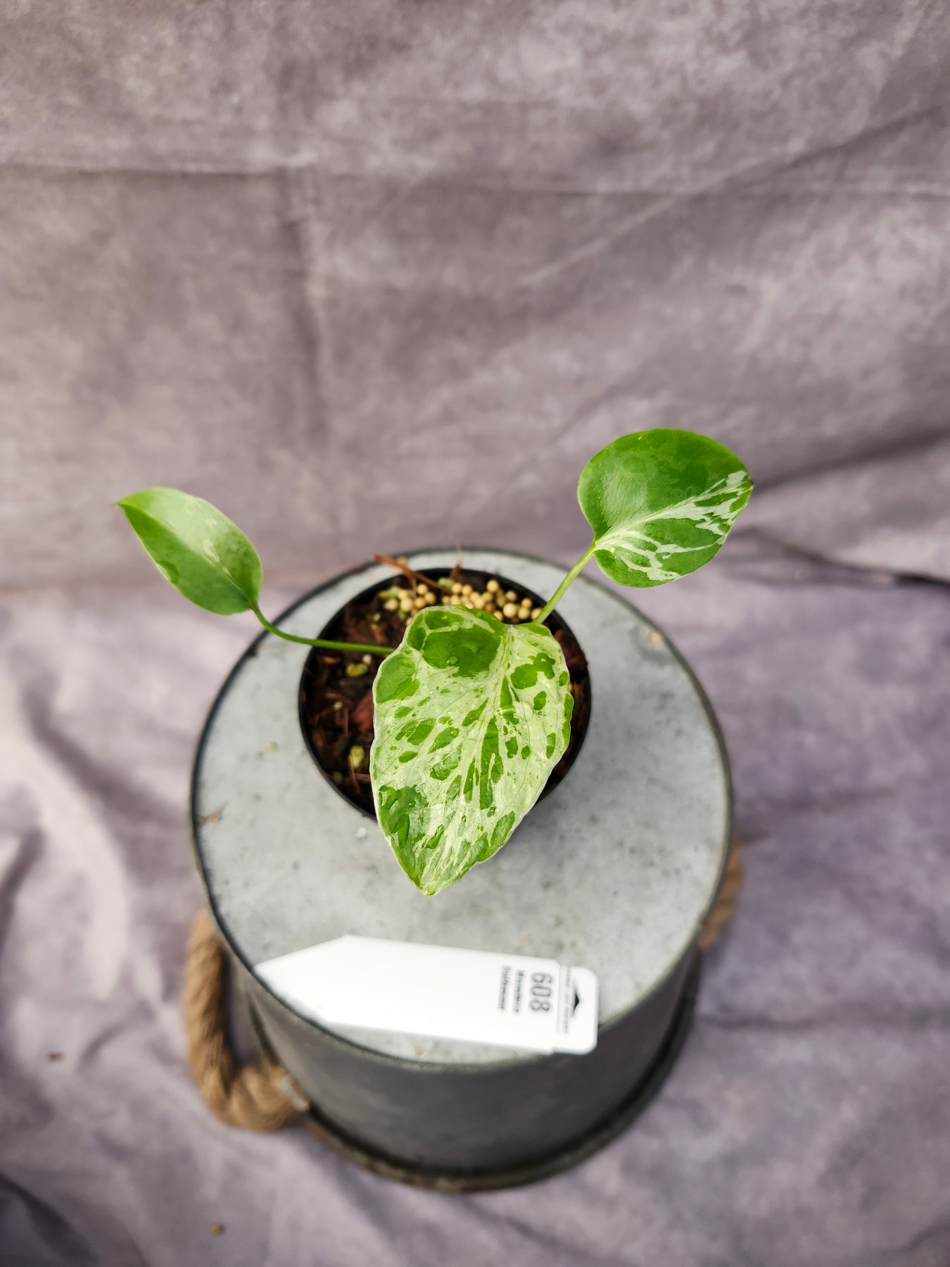 - Light: Bright, indirect light to maintain high-contrast variegation