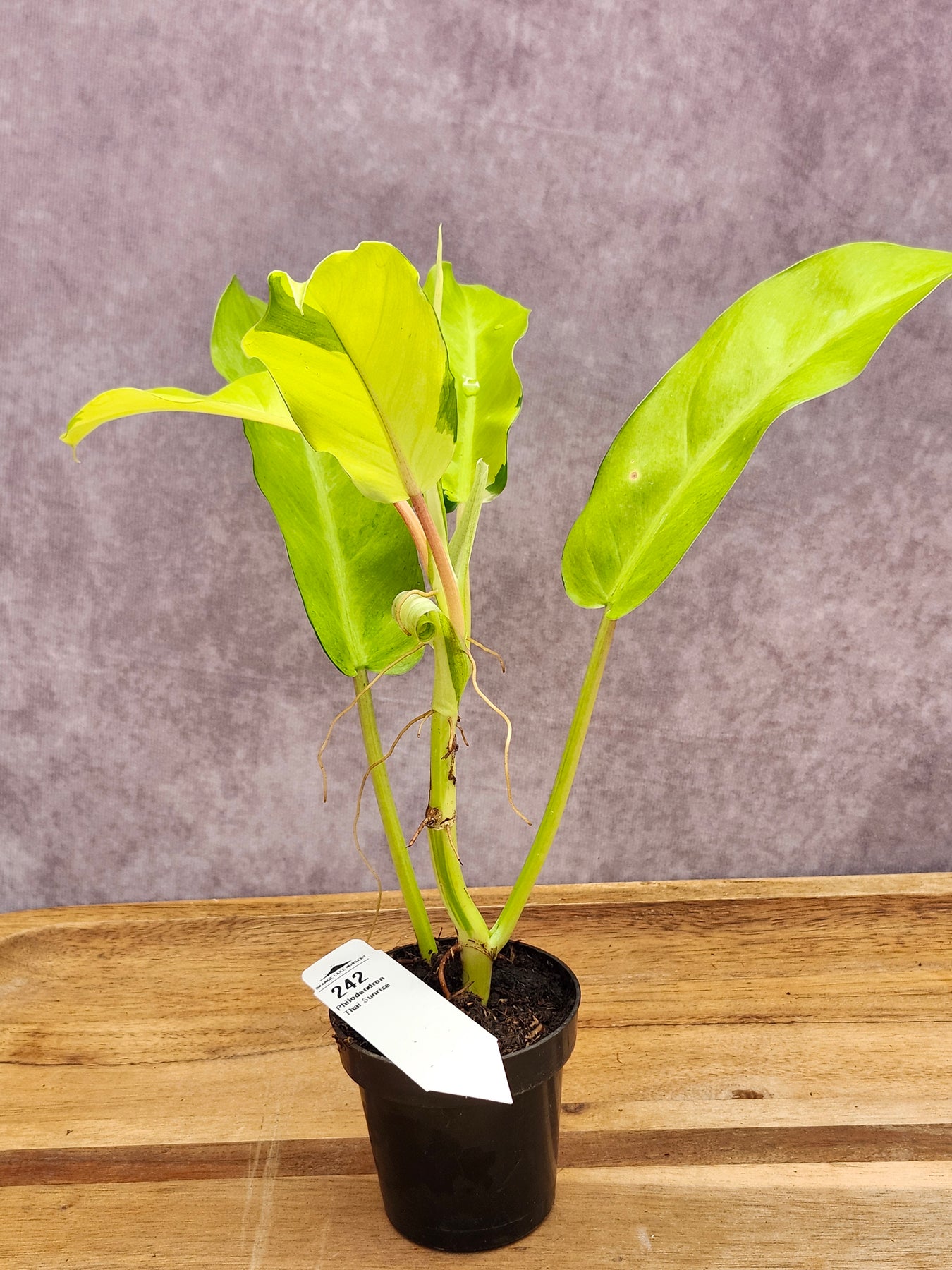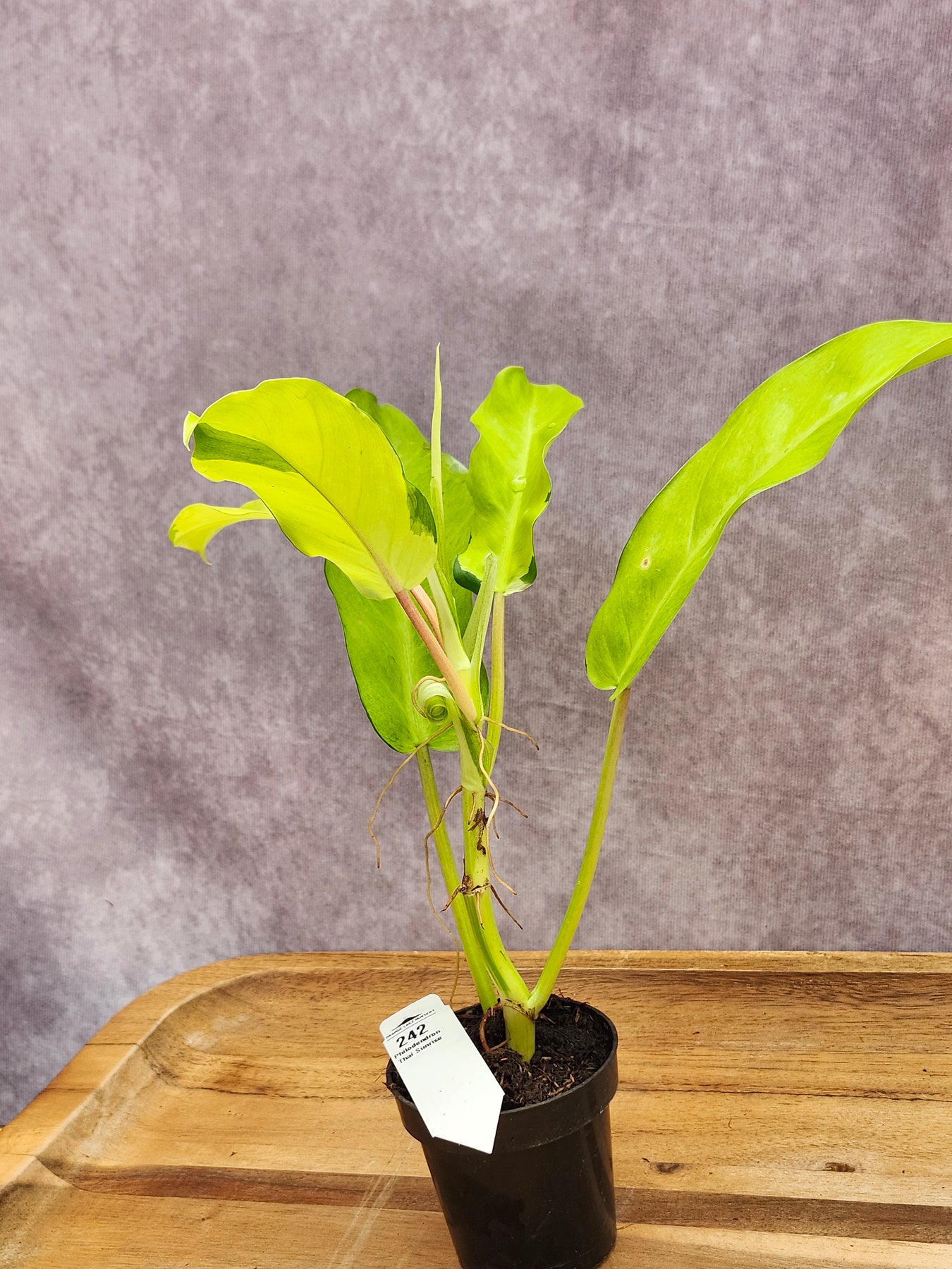 You will be purchasing the exact Philodendron Thai Sunrise shown in these photos. It is sold well rooted, in a 3 inch pot, packed with care, and with a tracking number. We are happy to answer any questions you may have so you can start your planting journey.
