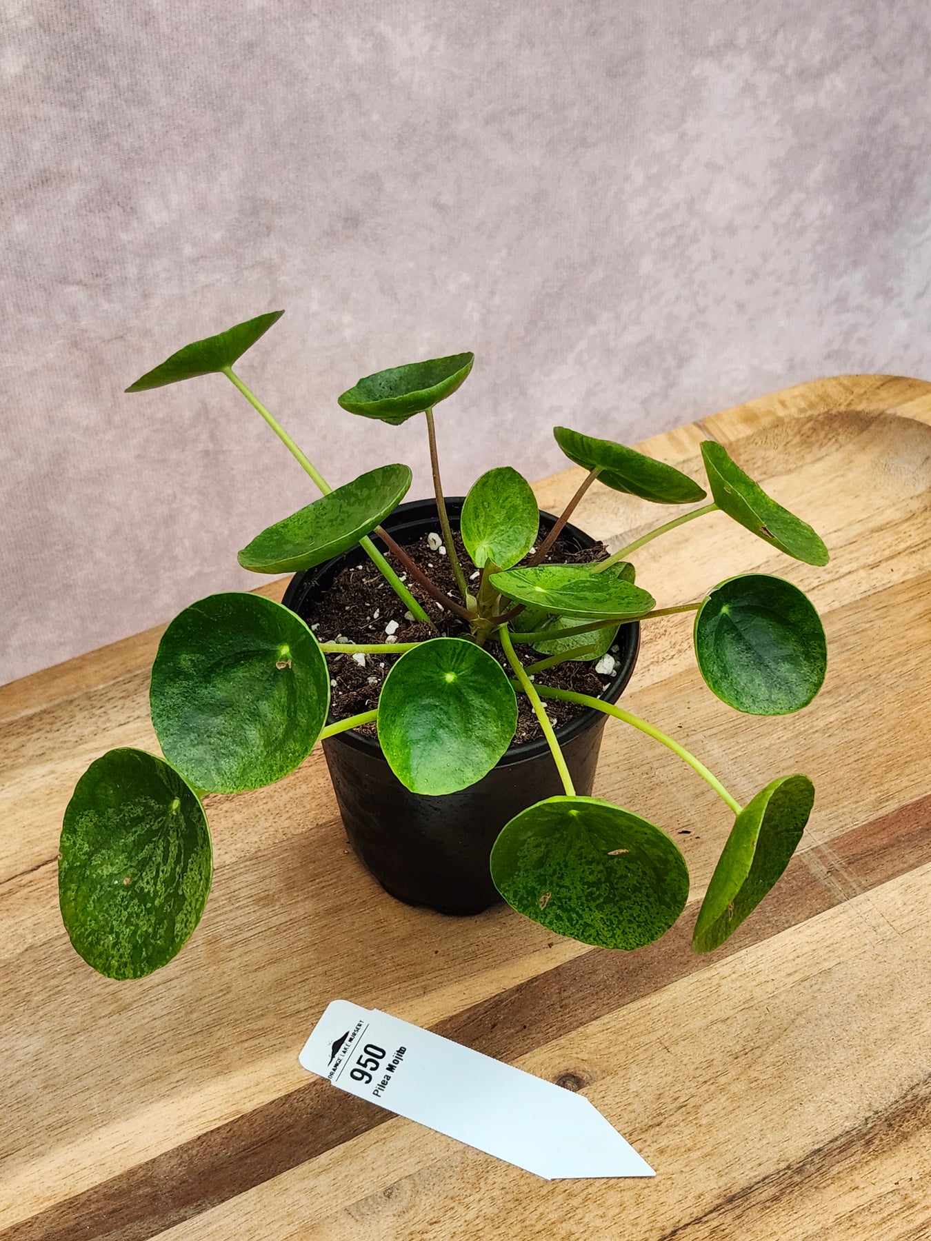 The Pilea Mojito is a fun, highly variegated spin on the classic Pilea Peperomioides. Known for its speckled mint-green marbling, this cultivar shows off unpredictable splashes, freckles, and patches of creamy variegation across each round, coin-shaped leaf. Every plant grows with its own pattern—no two Mojitos ever look the same—which makes it a favorite for collectors who love unique foliage.
