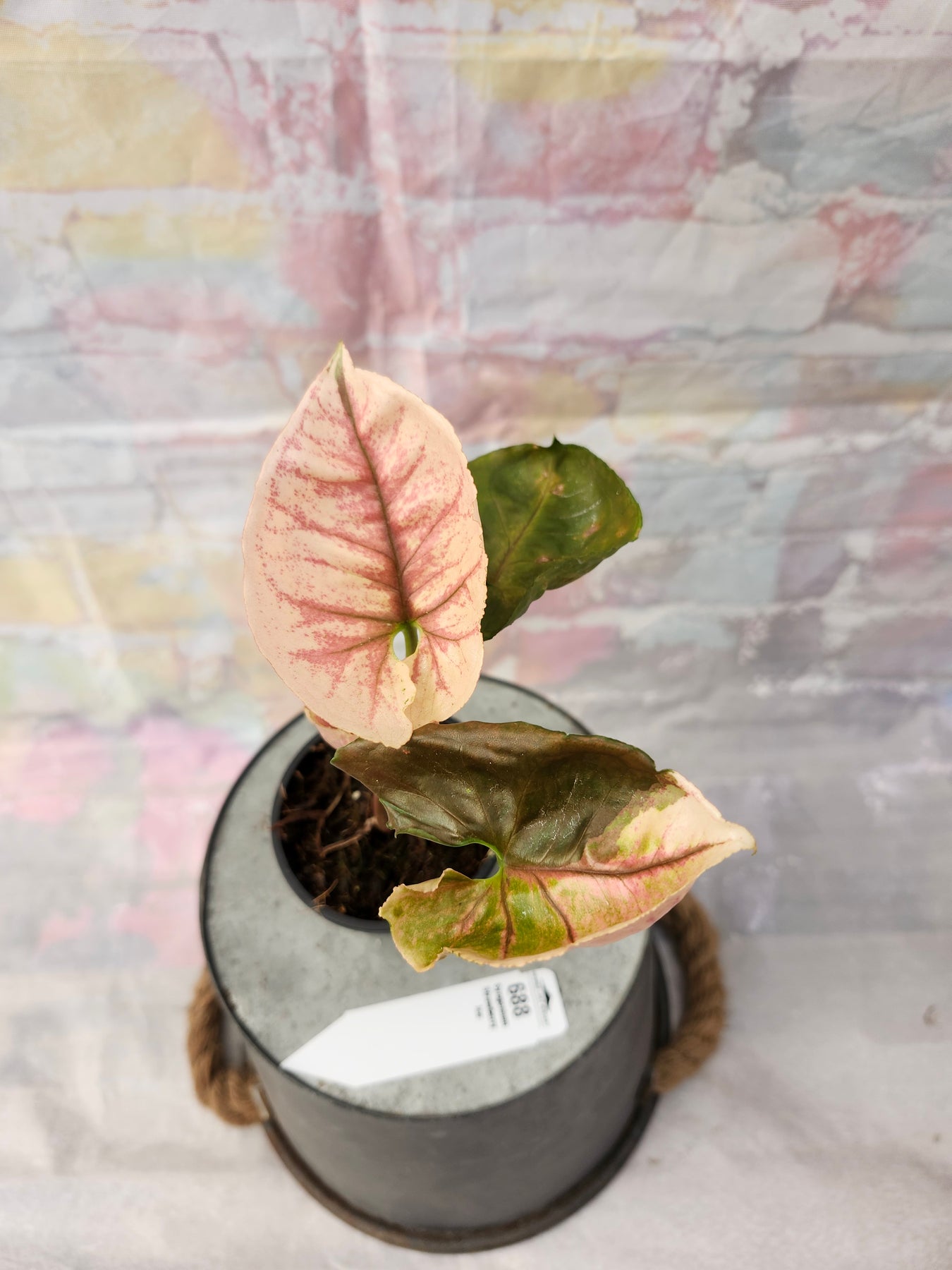 Brighten up your plant collection with the Syngonium Strawberry Ice—a stunning, eye-catching variety known for its creamy white and pink variegation. Each leaf features a beautiful blend of soft pink hues and crisp white accents, creating a delicate, frosted appearance that truly stands out. This Syngonium is perfect for adding a touch of sweetness and elegance to any shelf, terrarium, or hanging display.