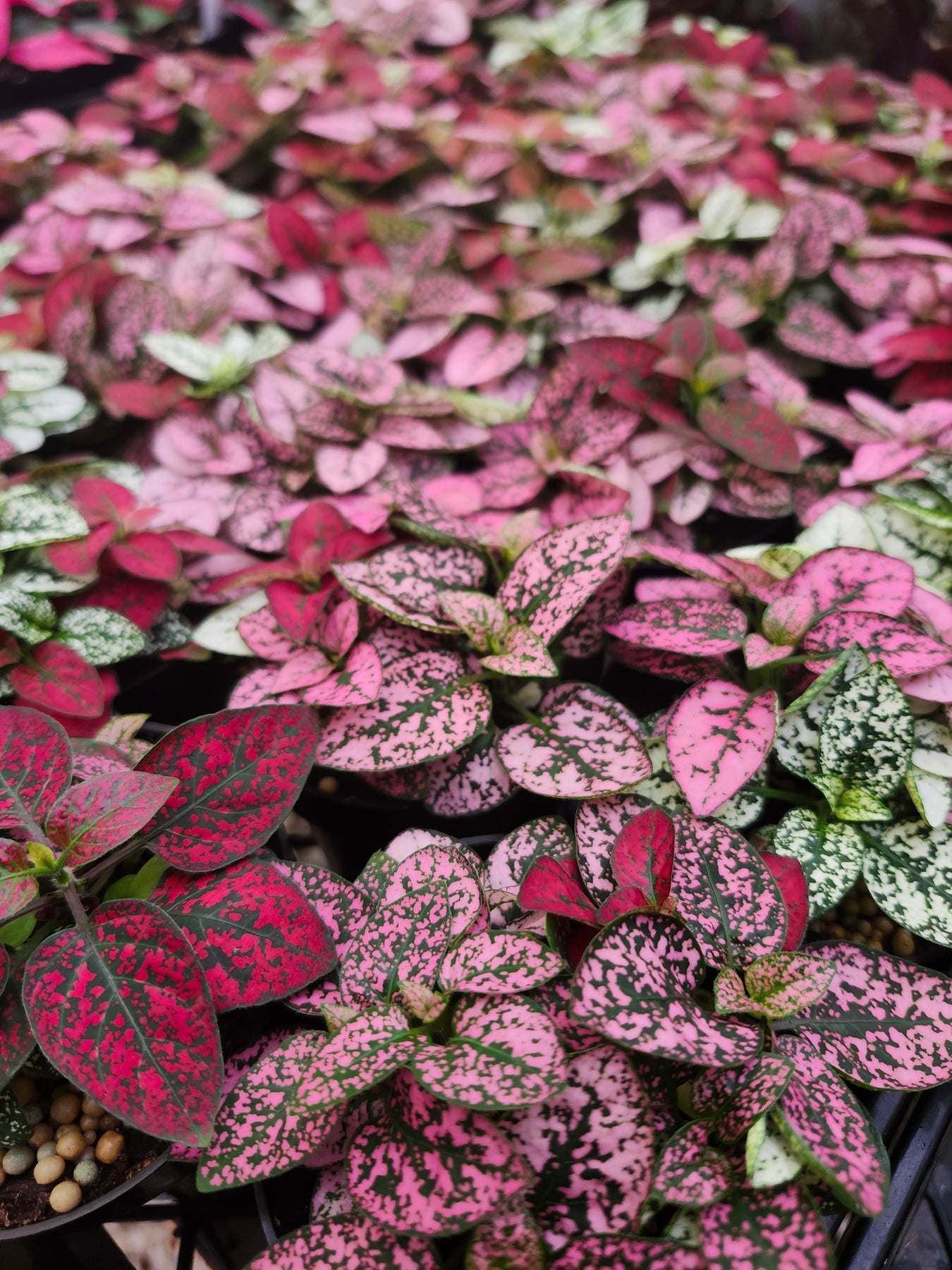 Multi-Color Polka Dot Splash is a playful, eye-catching plant bursting with speckles of pink, red, and creamy white across vibrant green leaves. Each leaf looks hand-painted with colorful splashes, making this beauty a cheerful pop of color for desks, shelves, or terrariums. Known botanically as Hypoestes Phyllostachya, this compact grower is perfect for adding a lively accent to any plant collection.